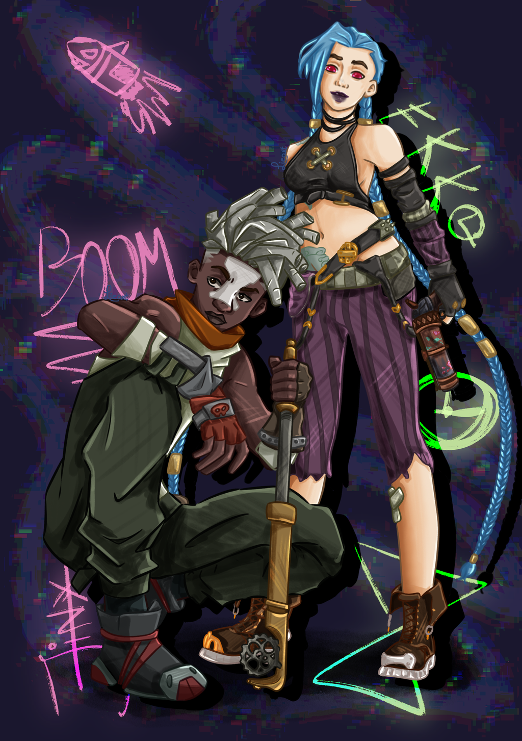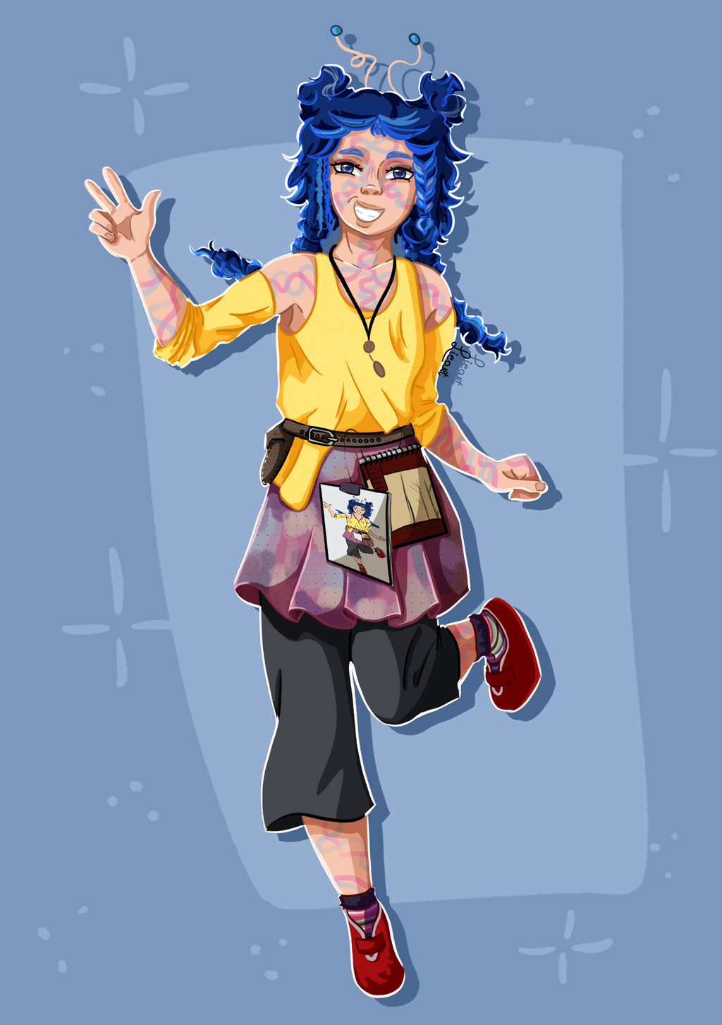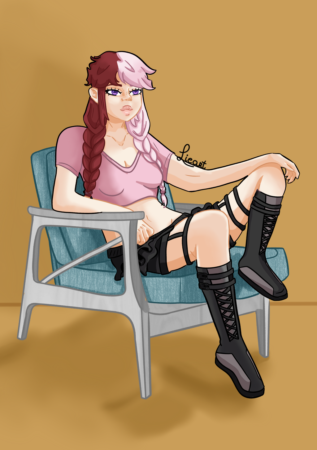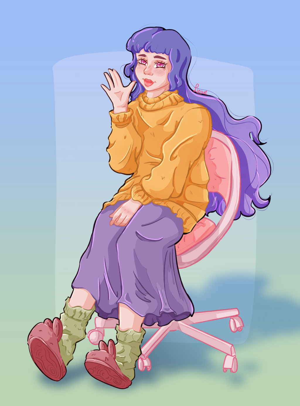 Ik heb een paar verschillende tekenstijlen. Mijn meest gebruikte stijl is celshading. Dit is een strakke manier van schaduwen aanbrengen. Ik gebruik deze stijl graag in mijn dagelijkse